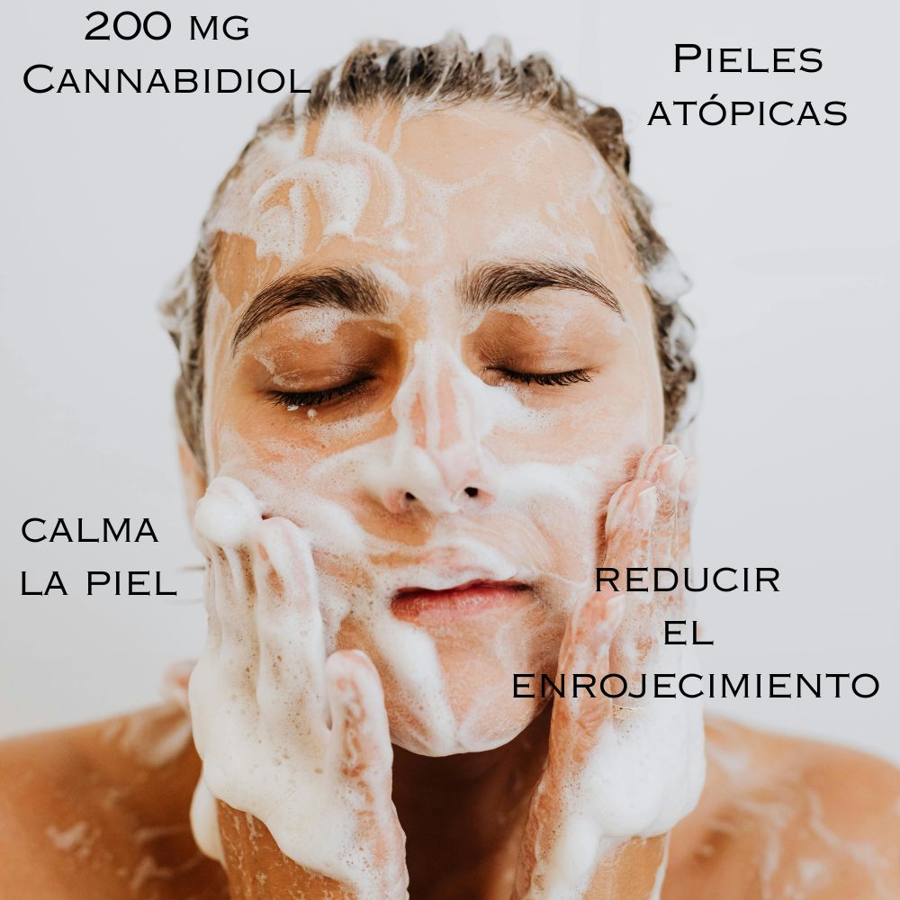 Jabón natural y artesanal cont 200 mg de CBD (Cannabidiol) y un alto contenido de Vitamina D, Omega 3, 6 y 9. Ideal para una limpieza suave con hidratación intensa. Reafirma y da brillo a la piel. Ayuda a calmar el enrojecimiento causado por inflamación.